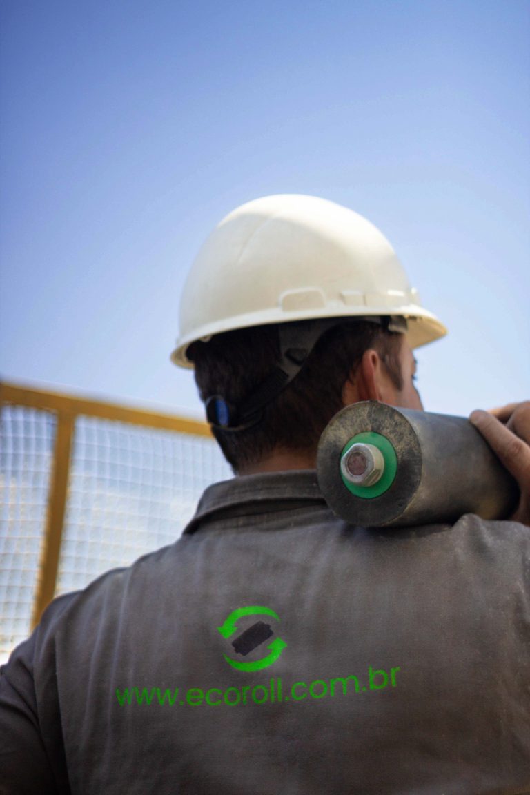 Diferente do rolete convencional em aço, o corpo do rolete ECOROLL é composto por matérias que reduzem em até 98% dos danos da correia.